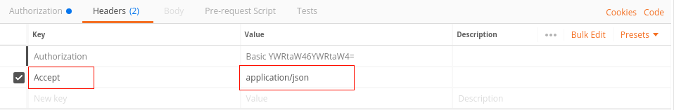 Under the Headers tab, you now need to insert in the Accept Header application/json as well: